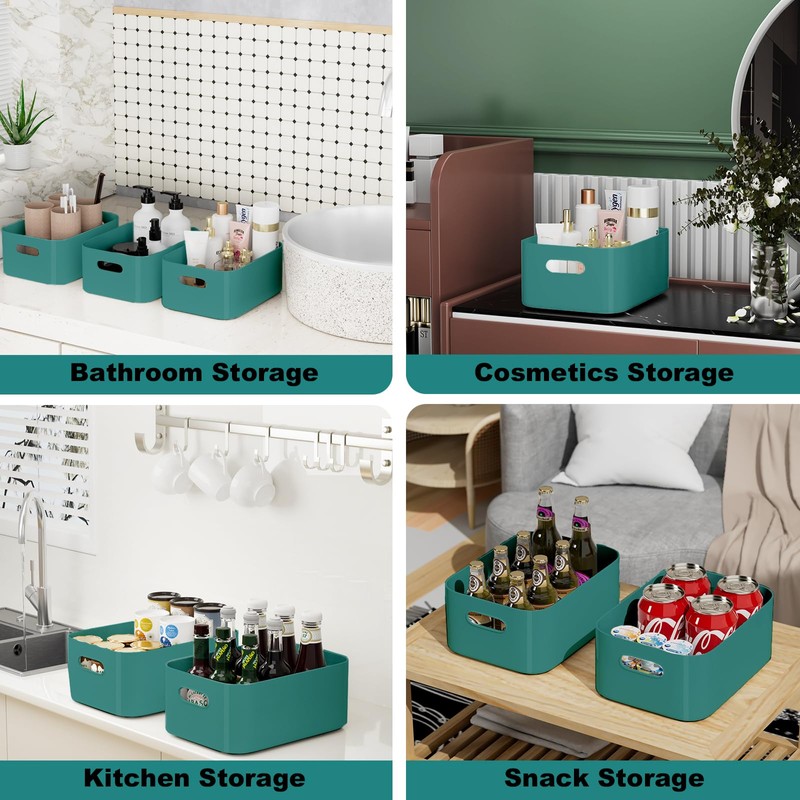 - 【5 Green Medium Storage Boxes】You will get 5 plastic storage boxes measuring 25×17×10cm, each plastic box with built-in integrated handles on both sides so that they can be easily taken out of the shelf or out of the closet, and easy to carry.