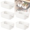 W&H 5 PCS White Plastic Storage Boxes Small, with Handle Storage Baskets for Shelves, Kitchen, Office, Fridge, Bathroom and Home, Mini Storage Boxes Rectangle - 8.2×5.5×2.7 Inch