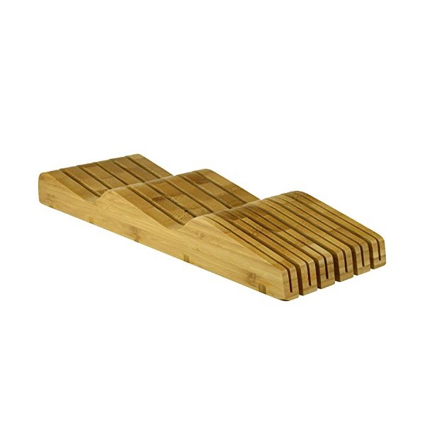 - In-drawer knife block keeps up to 16 knives organized while freeing up counter space
