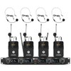 - BOX CONTENTS: 1 four-channel wireless metal receiver, 4 UHF bodypack wireless, 4 black headset microphones,4 black lapel lavalier microphones, 1 power adapter, 2 antennas,1 user manual