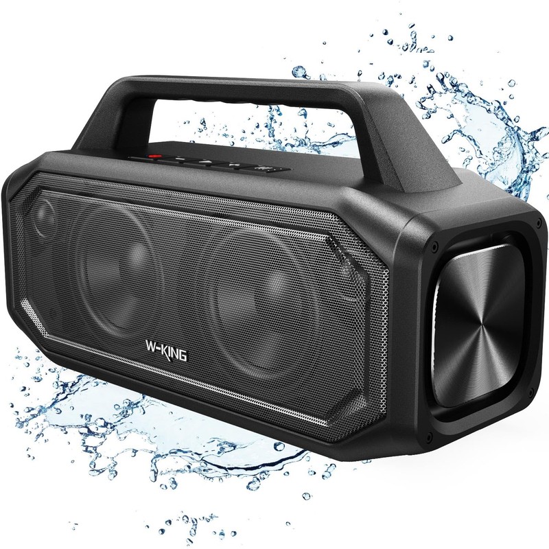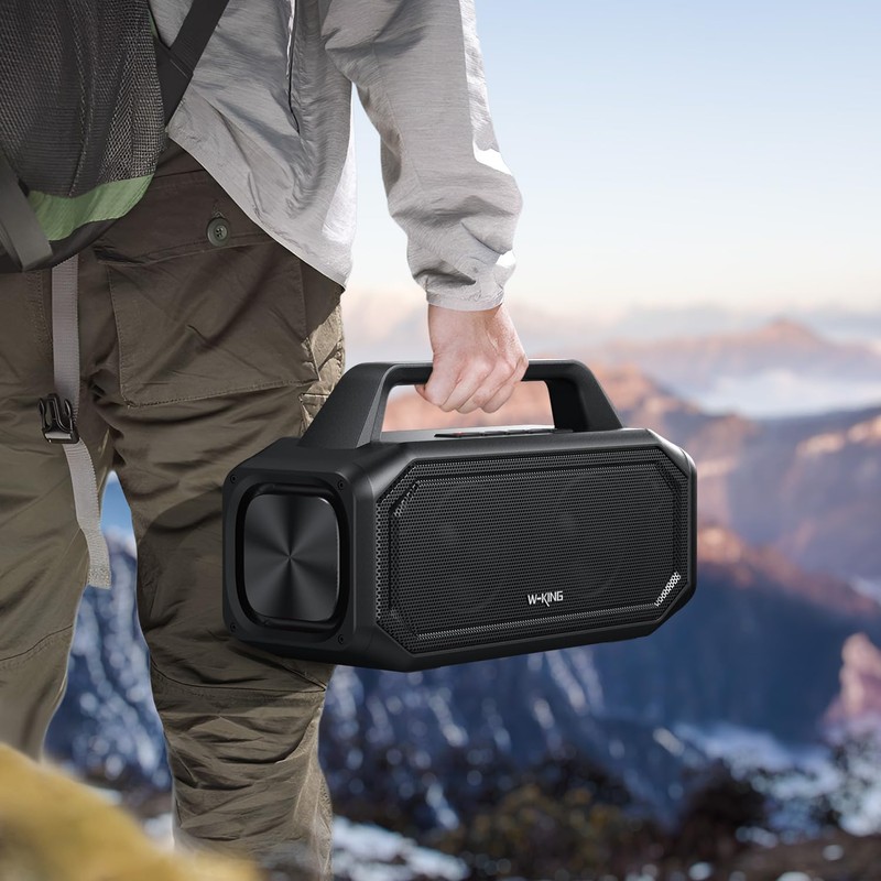 - With an IPX6 waterproof rating, you can use this speaker with confidence, whether you're walking in the rain or relaxing on the beach. Equipped with a large-capacity lithium rechargeable battery, the speaker offers all day of continuous playback, allowing you to enjoy music without frequent charging. With its superior sound quality, stylish design, and powerful features, it will bring you an unforgettable musical experience. Let music accompany you, and W-KING will make life even better!