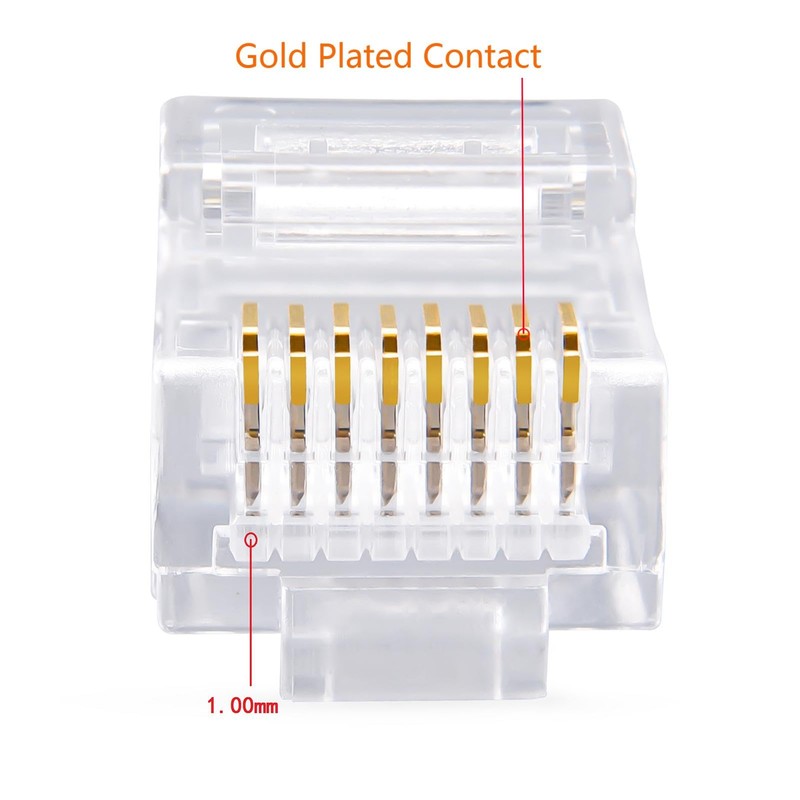 W-NECTOUN Cat5e RJ45 Connectors,100-PACK Cat5 Ends/Cat 5 Connector/Cat 5e RJ45 Modular Plugs(3-Prong Gold Plated 15μ),UTP Network Plug for Solid Strand Cable