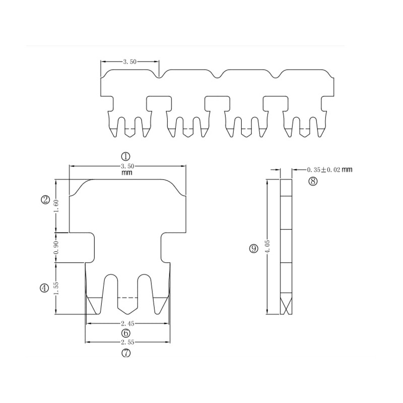 - 3-Prong contacts in the thickness of 0.35MM±0.02MM.