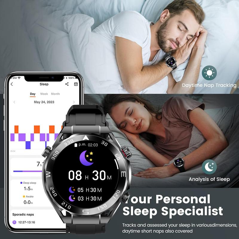 W&O Touch Screen Smart Watch with Wireless Calling, Digital Fitness Watches with Function 100+ Sport Mode DIY - Color: SILVER