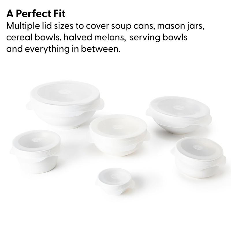 - A PERFECT FIT: Multiple lid sizes stretch to fit a variety of shapes from small tuna cans to serving bowls and everything in between. A sustainable, reusable upgrade from single-use cling wrap and foil just cover, clean, repeat. Each set includes one 2.5", 3.8", 4.5", 5.7", 6.5", and 8" lid.