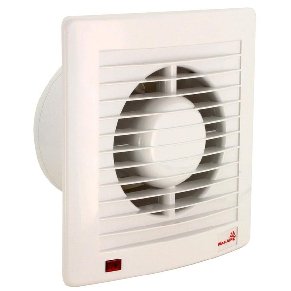 For ventilation of small and medium-sized rooms, simple, elegant design with low installation height, suitable for ceiling and wall mounting with overflow relay, adjustable from 3-25 minutes for pipe diameter 100 mm, 230 V, 50 Hz, 11 W speed per minute: 2460, flow rate: 95 m³/h, noise level: 31.4 dBA / 3m. Dimensions: 160 x 160 x 95 mm (W x H x D). Colour: white.