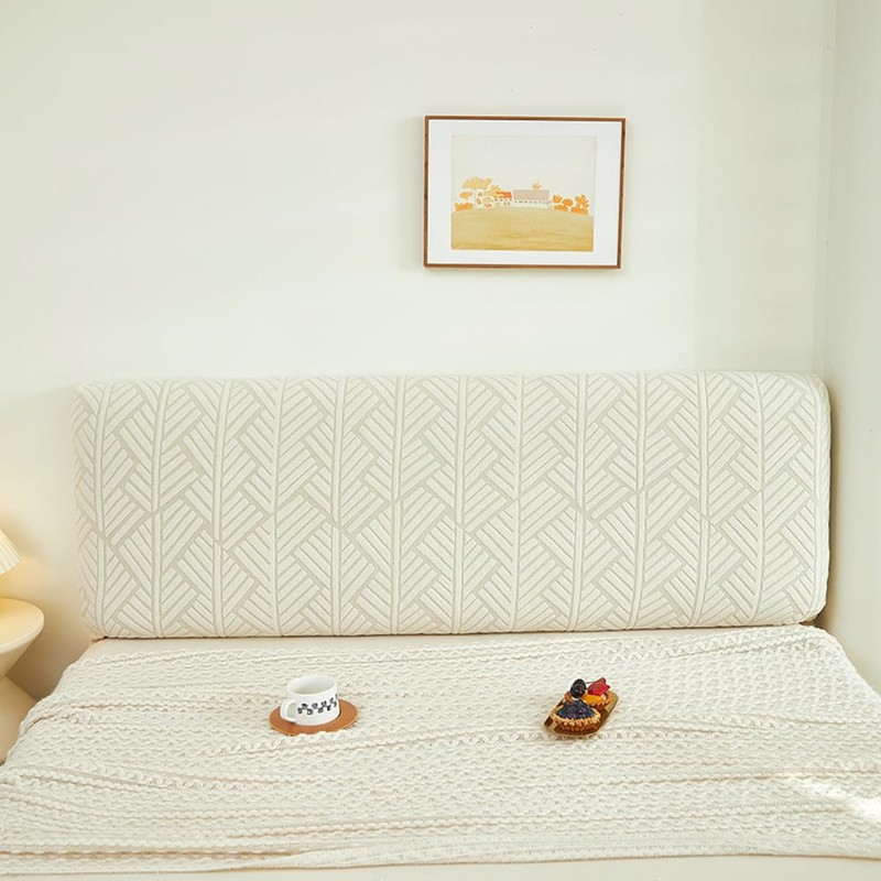 W WWEENUO Stretch Bed Headboard Covers, Jacquard Fabric Headboard Slipcover, Soft Dustproof Protector Cover for Upholstered Headboard Queen King (Beige, 1.8m/70.9in)
