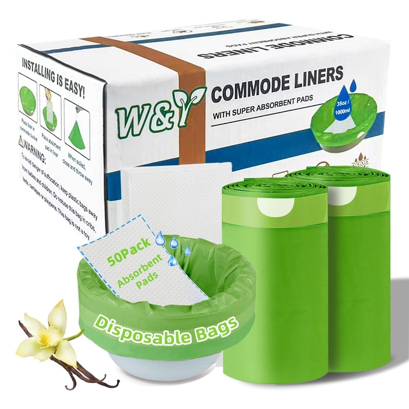 W&Y 50 Pack Commode Liners with Super Absorbent Pads, Universal Fit All Standard .