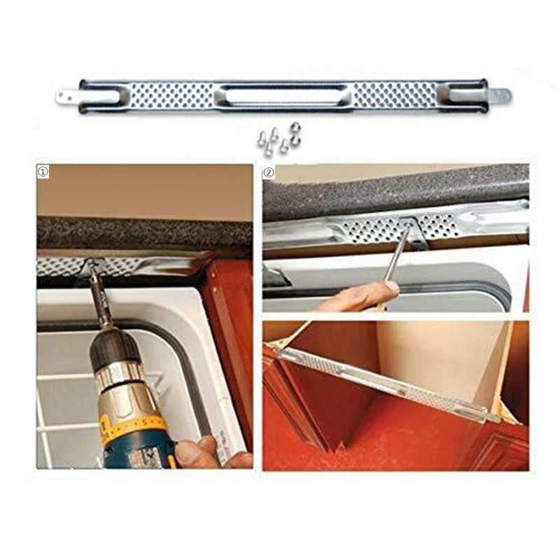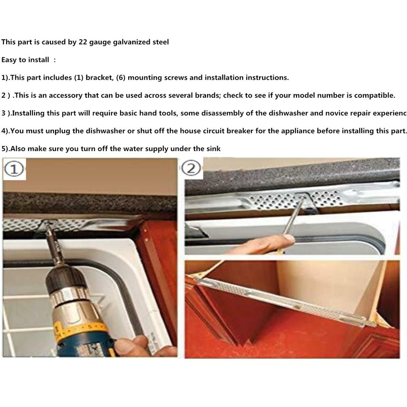 - 【Easy to install】Before the countertop is installed, the bracket is screwed into the top of the cabinet for installation. Install it to the side of the cabinet by bending the lug at the end of the bracket downward. then screw through the dishwasher installation pull ring, enter the screw hole grid.just fix it in place.