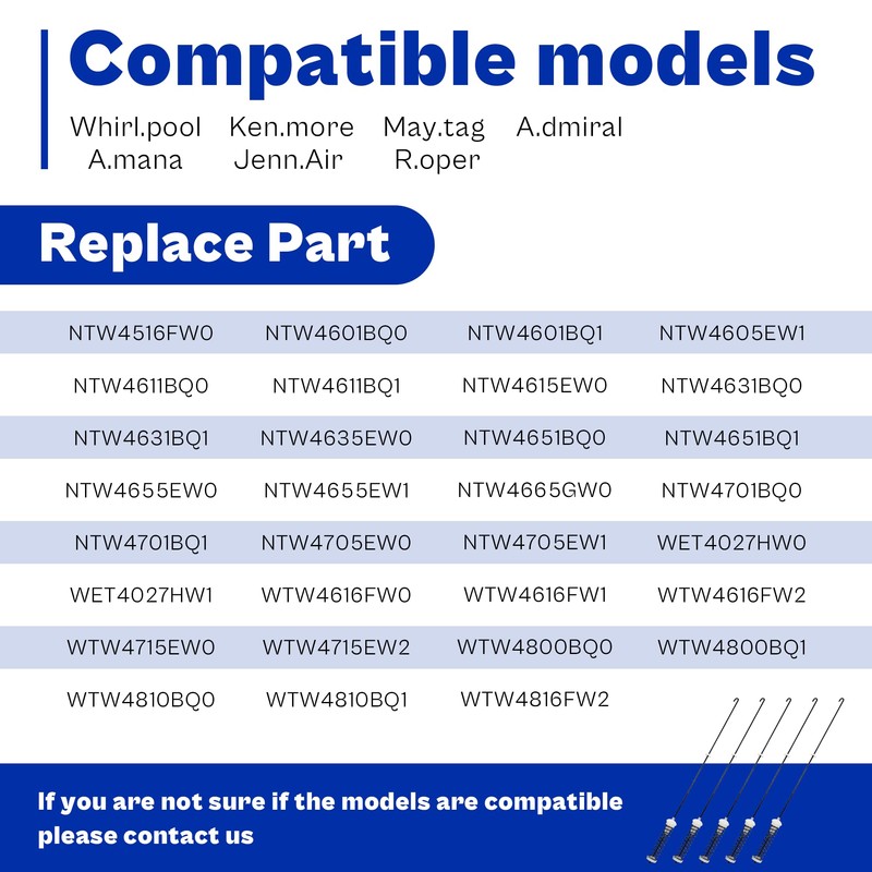 - 【PERFECT REPLACEMENT】W10780045 Washer Suspension Rod Kit Fit for Most Whirlpool,Amana Kenmore, Jenn Air and Maytag Roper and Admiral washing machines.Fits NTW4516FW0 NTW4601BQ0 NTW4601BQ1 NTW4605EW1 NTW4611BQ0 NTW4611BQ1 NTW4615EW0 NTW4631BQ0 NTW4631BQ1 NTW4635EW0 NTW4651BQ0 NTW4651BQ1 NTW4655EW0 NTW4655EW1 NTW4665GW0 NTW4701BQ0 NTW4701BQ1 NTW4705EW0 NTW4705EW1 WET4027HW0 WET4027HW1 WTW4616FW0 WTW4616FW1 WTW4616FW2 WTW4715EW0 WTW4715EW2 WTW4800BQ0 WTW4800BQ1 WTW4810BQ0 WTW4810BQ1