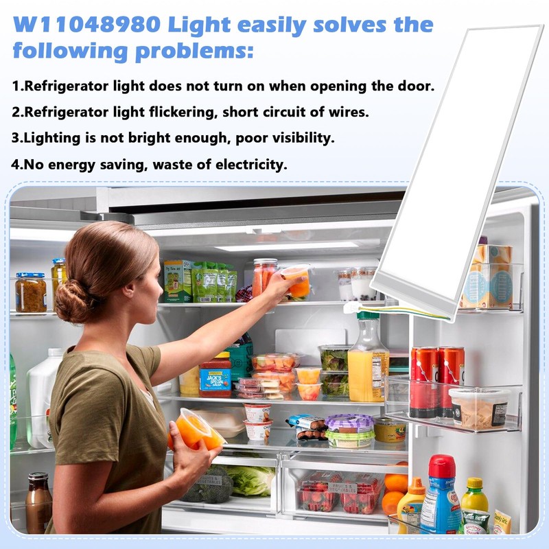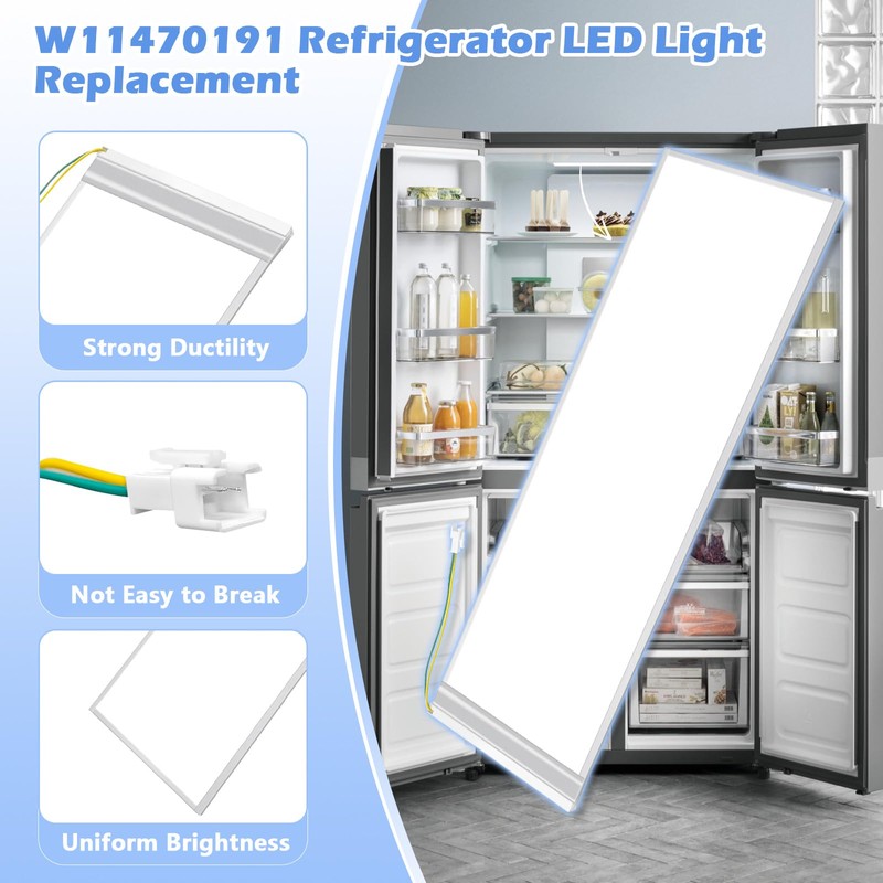 - PROBLEM SOLVED: The W11470191 refrigerator LED light replacement easily solves the following problems: Inadequate lighting and poor visibility. Refrigerator light does not come on when opening the refrigerator door. Refrigerator light flickers, short circuit of wires. No energy saving, wasting electricity. Simple installation can solve the above problems.