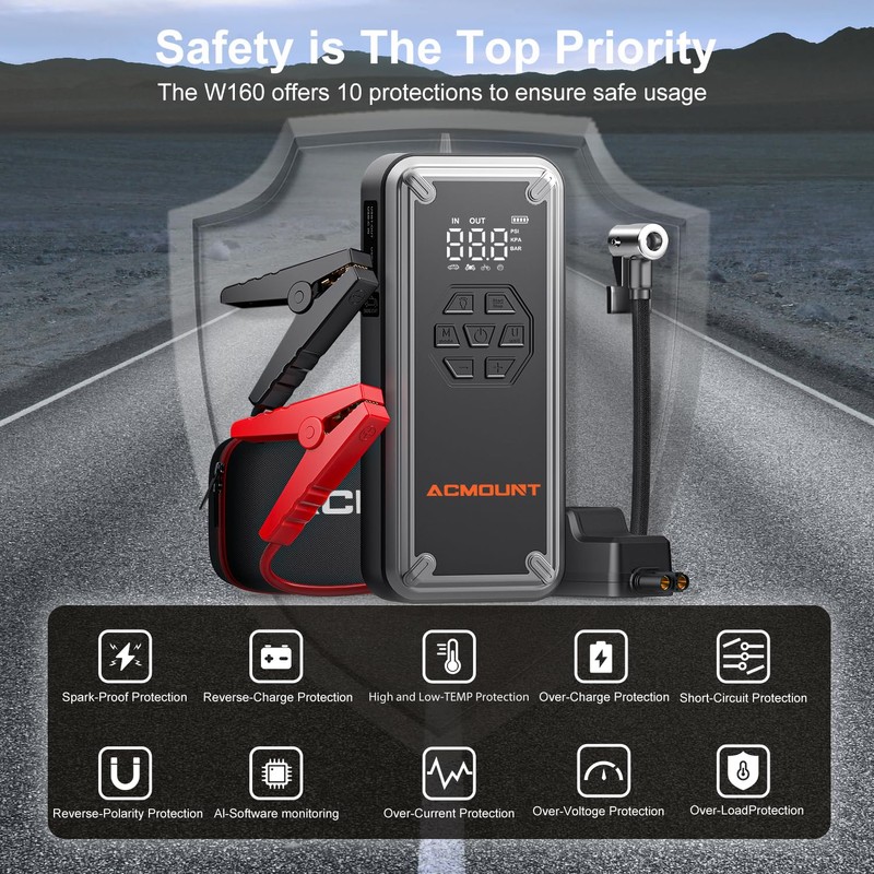 Acmount W160 Jump Starter with Air Compressor, 5000A Car Jump Starter 150PSI Tire Inflator, 12V Car Battery Jumper Pack for Up to 9.0 Gas/8.0L Diesel, Portable Air Pump with LCD Display & LED Light