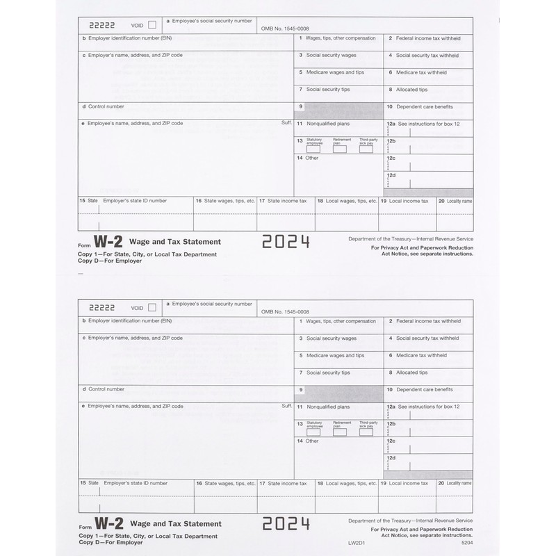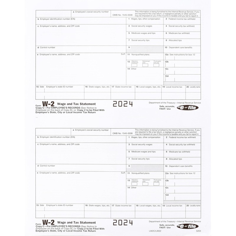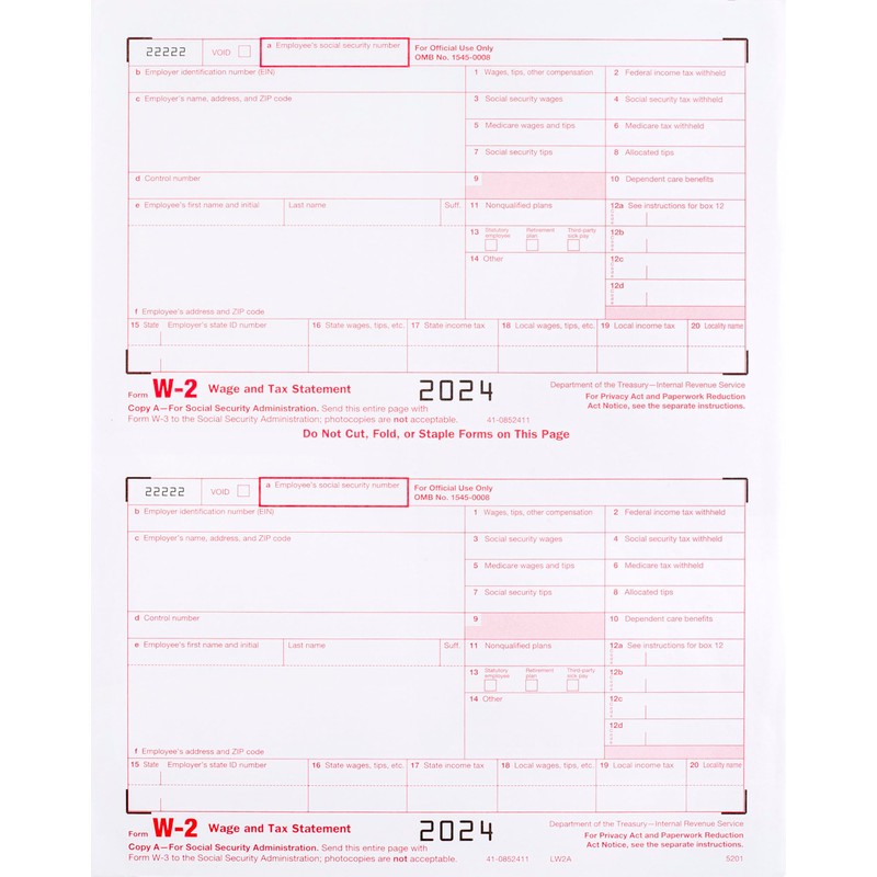 • Value Pack - Make it easier than ever to file W-2 forms for your employees with a 2024 tax form kit that contains everything you need to report income, social security, and healthcare tax withheld.