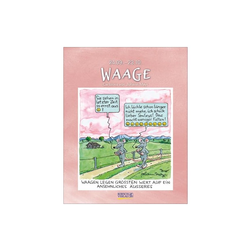 Waage 2026: Sternzeichenkalender-Cartoonkalender als Wandkalender im Format 19 x 24 cm.