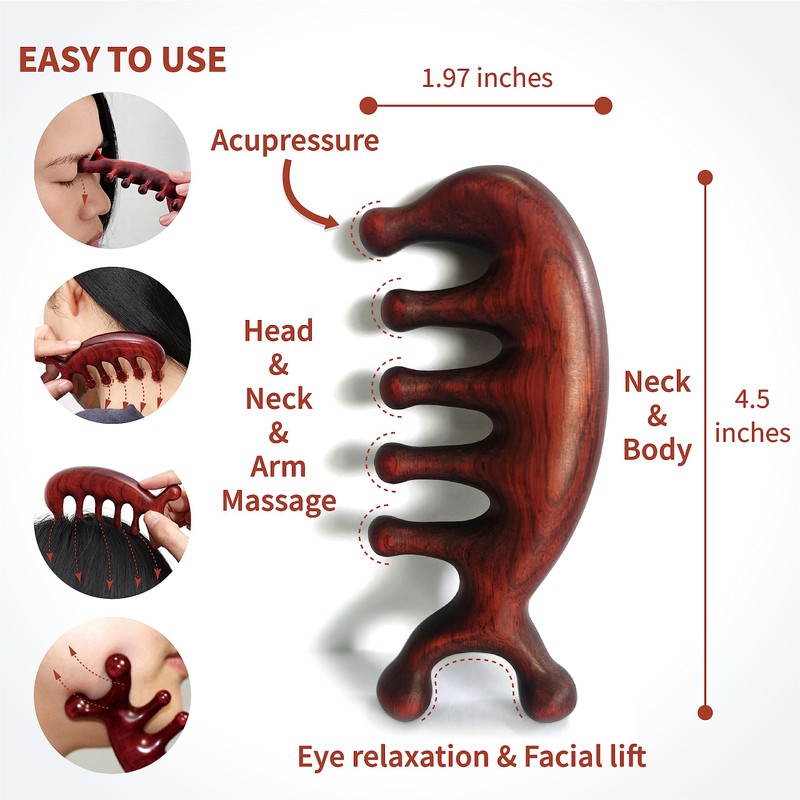 • Use Tips .The comb can be used to massage various parts of the body. Round-tooth design massage comb can prevent scratches. Pressing the correct acupoints and following the correct direction will also improve the massage effect. Our accompanying manual will also provide detailed instructions on the direction and location of the massage. Please don't worry.
