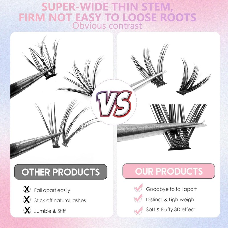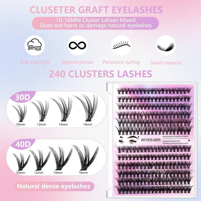 Wabuyao Cluster Lashes, Lash Extension Kit 30D 40D Individual Lashes D Curl E...