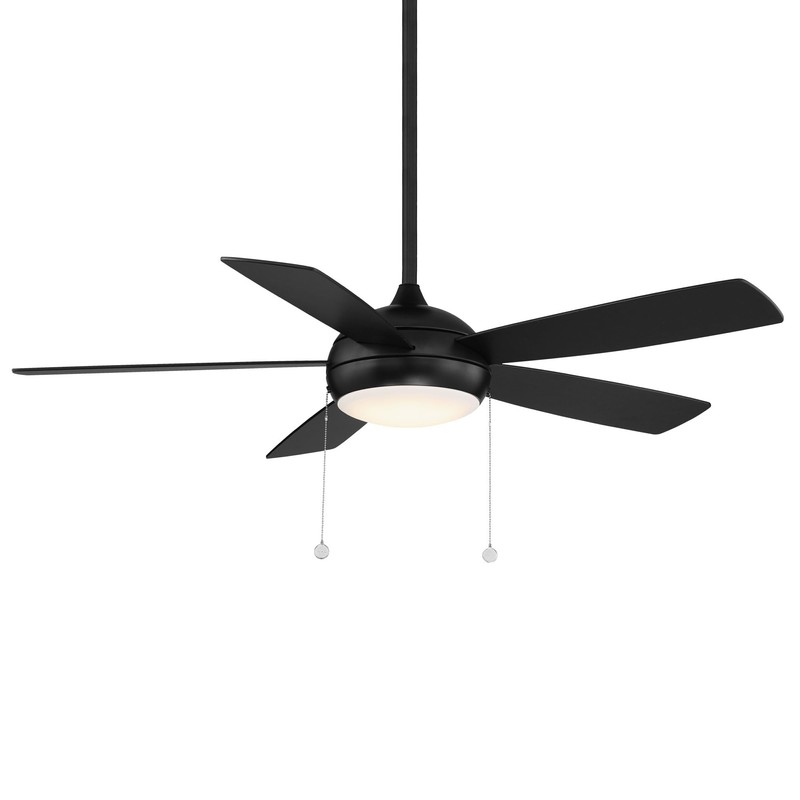 WAC Disc II 5-Blade Energy Star Pull Chain Memory Ceiling Fan 52in Matte Black with 3000K Dimmable LED Light Kit