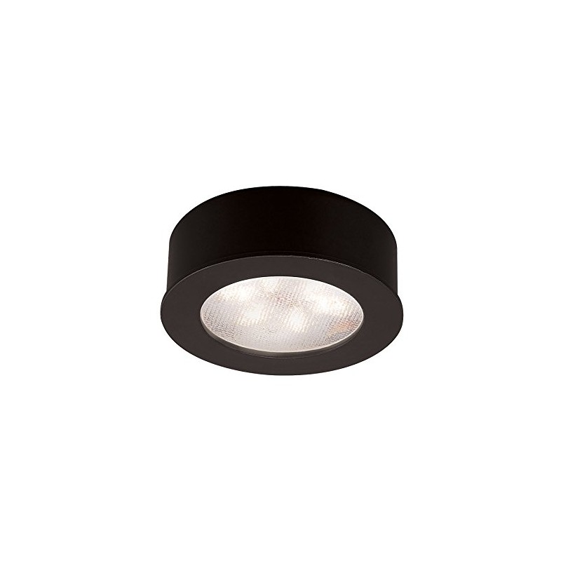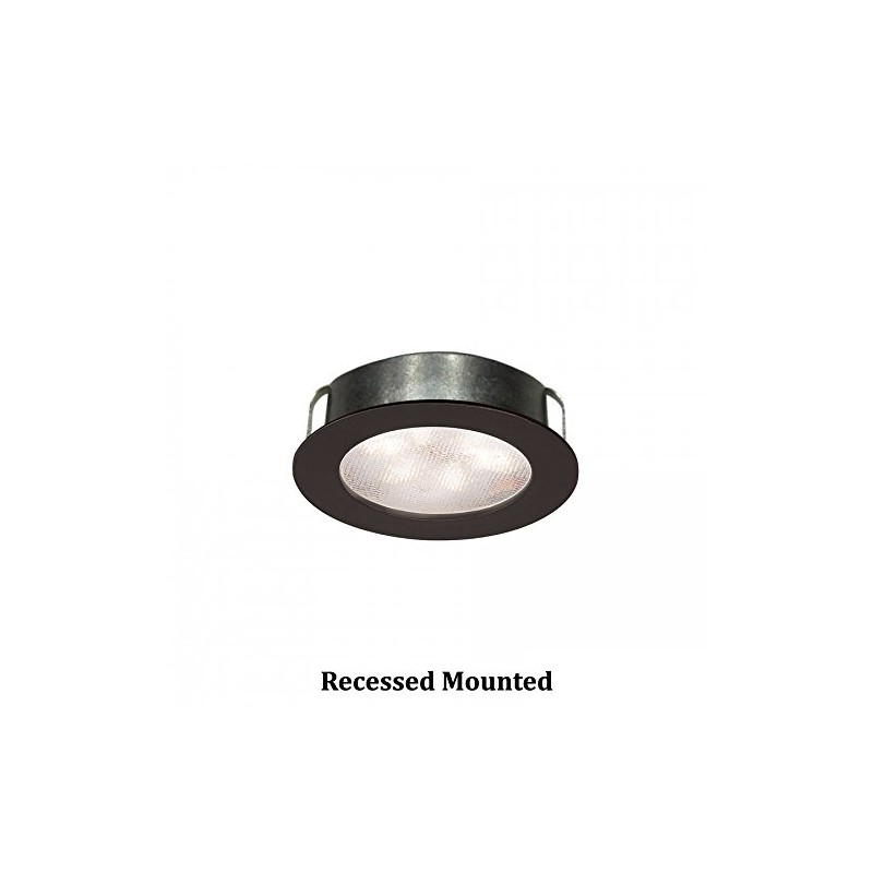 Round LED button light 3000K soft white in Black. Designed with a low profile and shallow installation depth for tight spaces in recessed or surface mounted installations, the innovative LED87 button lights offer a low profile and shallow installation depth can be surface mounted or recessed for a built-in look within Shelves, under and inside cabinets, curios and displays in fine residential and retail environments delivering strong light output with the latest in LED technology. Includes 72 inches of wire, button lights can be wired in a series to one another up to the maximum load on the power supply used. Class II, 24V remote and plug-in transformers allow up to 20 button lights to be wired together.. all steel construction, can be recessed or surface mounted with all necessary hardware included for either installation. Low profile and shallow installation depth. Smooth and continuous dimming to 15% using an electronic low voltage (elv) dimmer. Supplied with 72 inch wires, cutout template included for recessed installations. Must be used with a class 2 power supply: en-2460-rb2, en-24100-rb2, en-2460-p-ar, en-24100-277-rb2-t. 4.8W high powered LED included: 2700K - 3000K color temperature options, 24V, 180 lumens, G4 base, 70,000 rated hours. Standards: UL & cul listed for damp locations.
