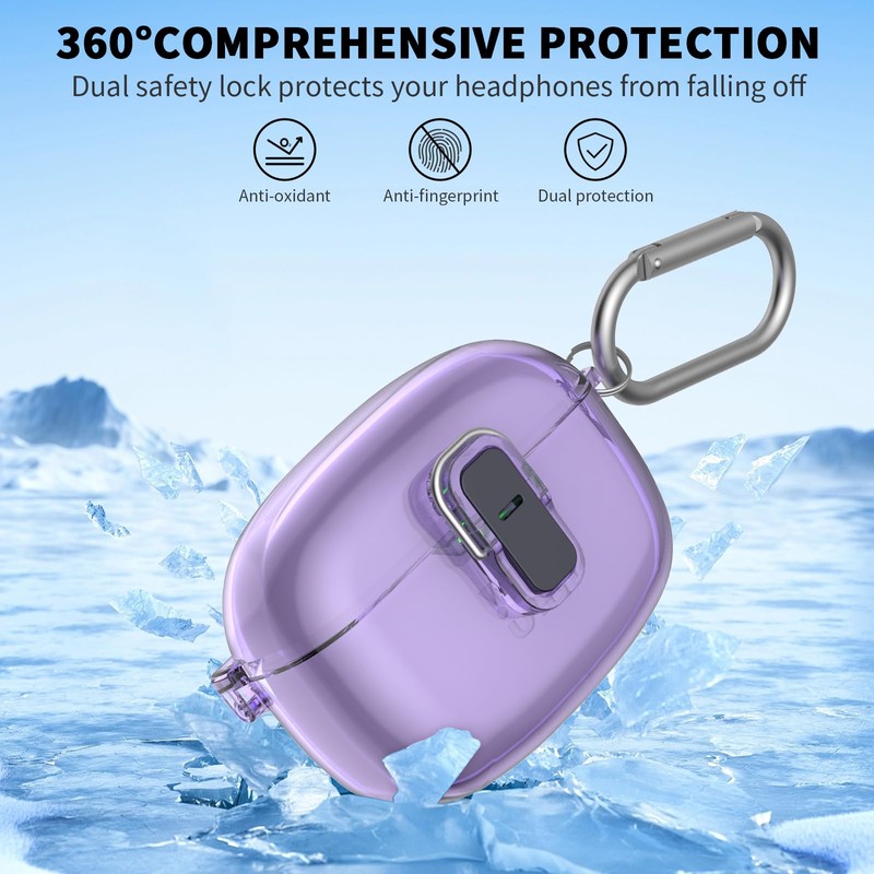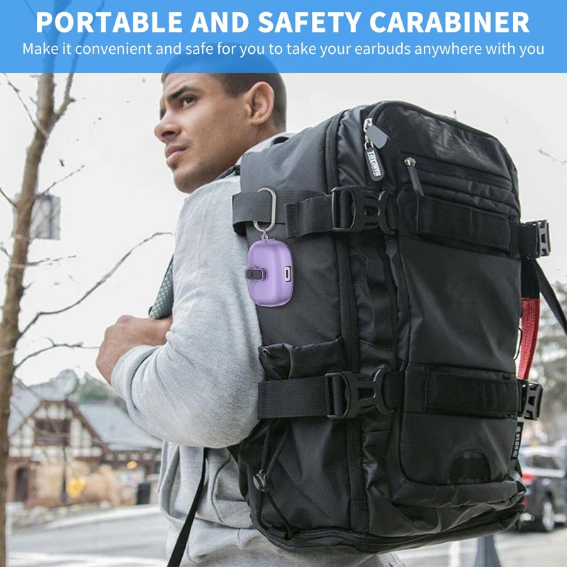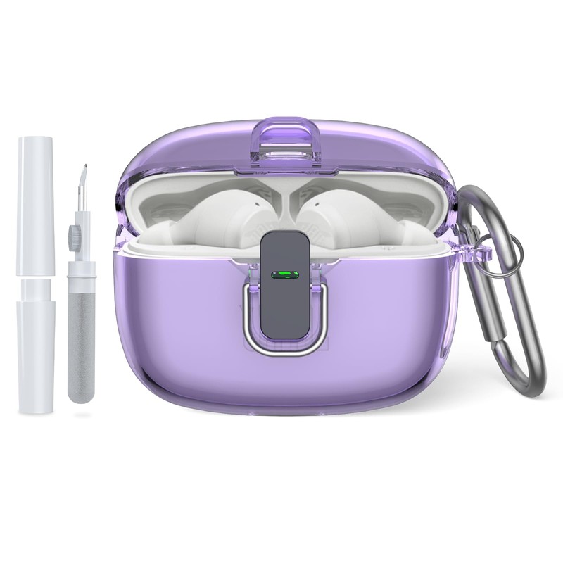 Wacanc for JBL Vibe 200TWS Case/JBL Vibe Beam Secure Lock Case Cover with Cleaner Kit, TPU Protective Case with Carabiner for JBL Vibe 200TWS/JBL Vibe Beam Charging Case (Clear Purple), PEI-D46-1