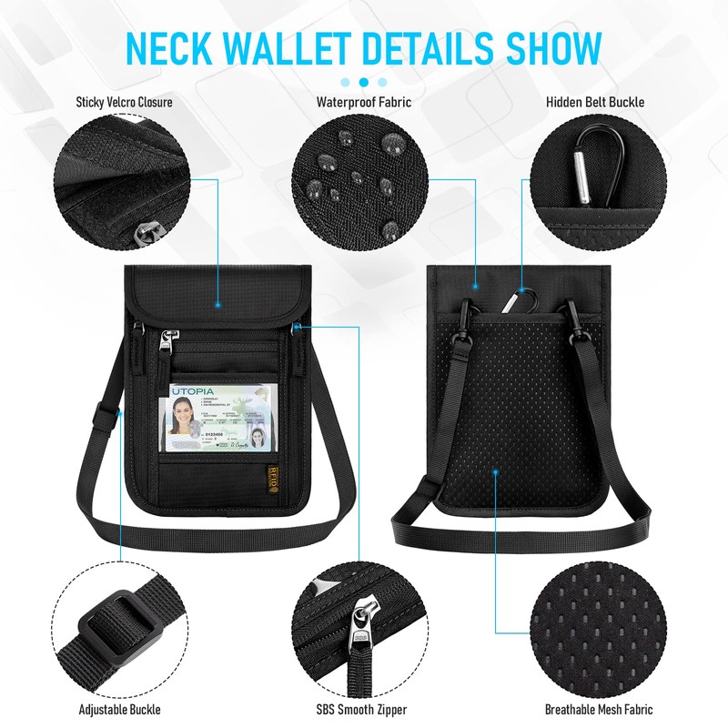 - RFID blocking technology: Our neck pouches for men and women are equipped with advanced RFID blocking technology that protects your valuable information stored on RFID chips from unauthorised scanning on the go. It is especially useful for people who travel a lot.