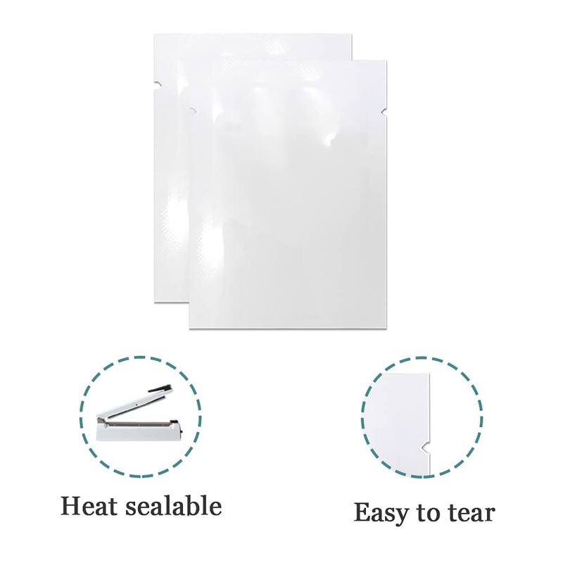 WACCOMT Pack 100 Pack 12 x 18cm (4.7 x 7.1 inch) White Foil Bags with Notch Mylar Foil Open Top Vacuum Sealable Small Item Food Storage Pouches Aluminum Foil Heat Seal Take Out Containers Smell Proof