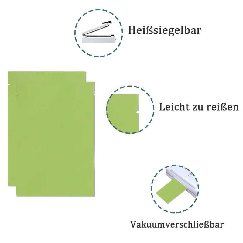 WACCOMT Pack Pack of 200 Flat Open Top Mylar Bags, Vacuum Sealable, Long-Term Food Storage, Matte Bags, Heat Sealable with Tear Notch (8 x 12 cm (3.15 x 4.72 inches), Green)