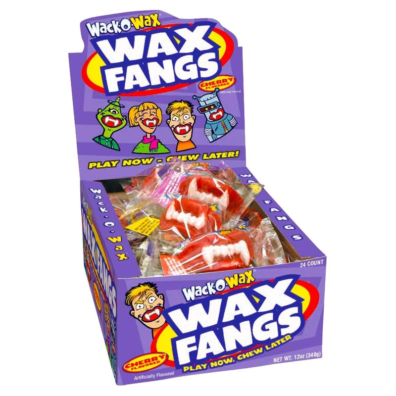 - Cherry-flavored Wack-O-Wax Fangs are an all-time 'play now, chew later' wax treat favorite.