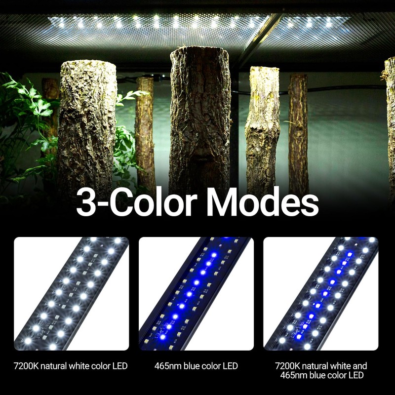 - 【Dimmable 3 Light Modes】Easily switch between 3 different light modes, including white, bule, and white blue mixed.promote the health of your reptiles.