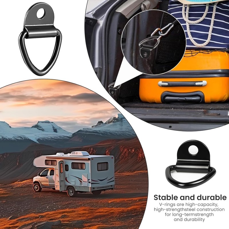 - Wide range of applications: D Ring tie down hooks trailer anchor for trailers, trucks, ATVs, 4x4s, motorbikes, flatbeds, SUVs, rear fenders and other loads, but also for tents, hammock attachments, furniture, camping equipment, courier boxes, etc