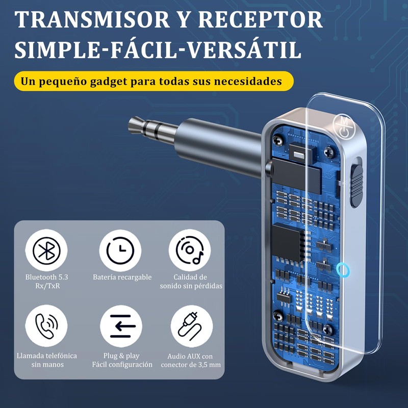 - 🎧【Plug & Play & Portable】Este bluetooth adapter auto adopta un diseño plug-and-play que es fácil de usar. Simplemente conéctelo al puerto auxiliar de 3,5 mm de su dispositivo y luego conéctelo a su dispositivo Bluetooth. Batería de litio recargable incorporada,Olvídate de tener que cargarlo constantemente, ya que este receptor Bluetooth para automóvil tiene una batería de larga duración que te permite disfrutar de música y llamadas manos libres durante horas.preocupaciones.
