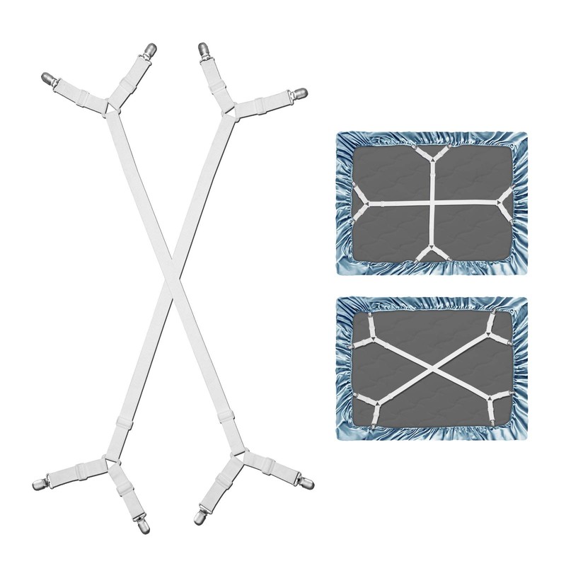 Package includes 2 pieces bed sheet holder straps. Our bed sheet holder strap attachments are expanded to meet the needs of most people. Only two sheet holder straps are needed to secure the sheet tightly. Only need two to fix the sheet at four angles.