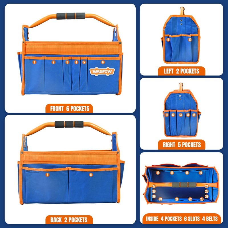 - Large Capacity: The tool bag features 15 external and 14 internal pockets, capable of accommodating various tools and keeping your equipment neatly organized