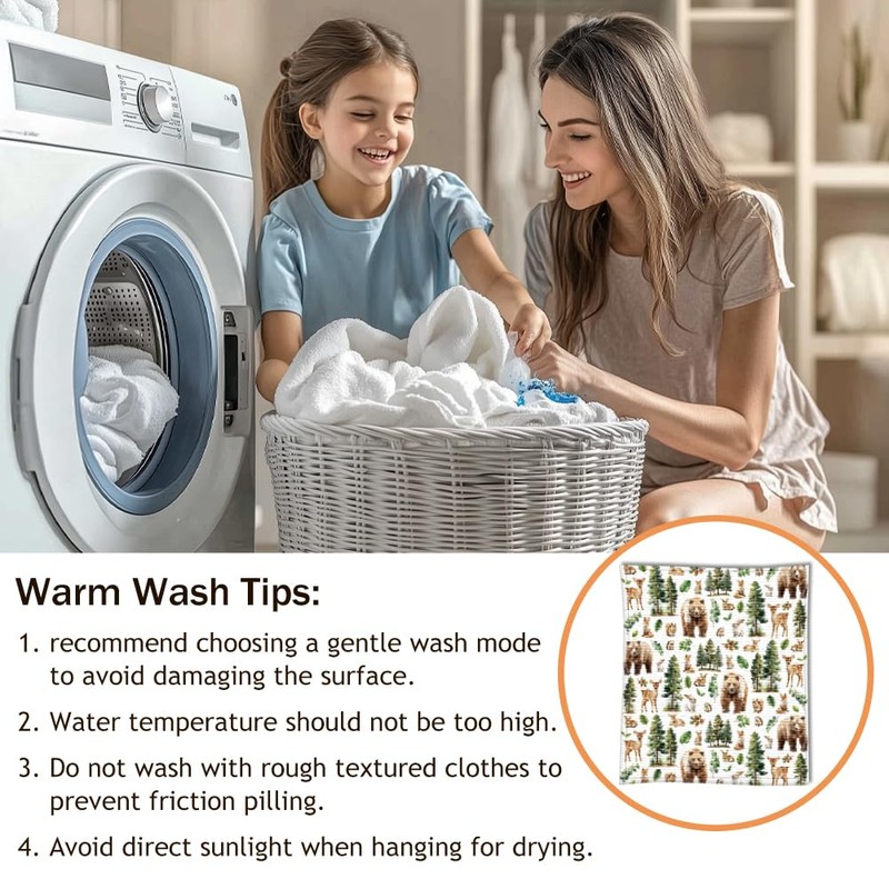 - Animal Forest Design: Our soft blankets incorporate a variety of animal elements, including pine trees, bears, rabbits, foxes, deer, and other rich elements, creating a visual experience that is both fashionable and funny. Whether for everyday use or home decoration, they provide a comfortable experience