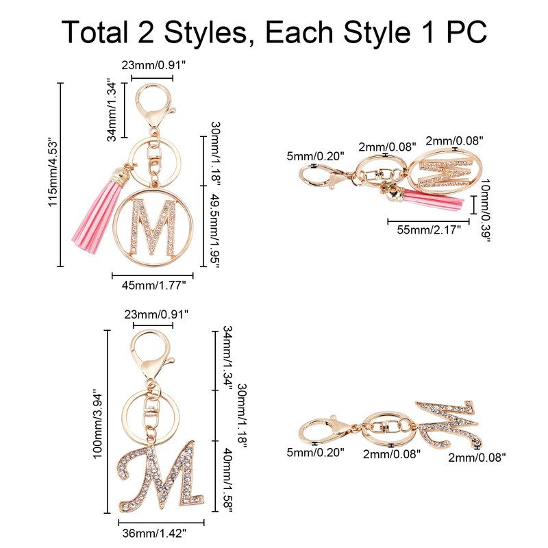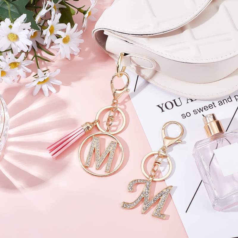 - 2 Different Styles You will get 2 pieces M keychains with tassels. There are 2 different styles. The beautiful key rings can meet your daily replacement needs. Very suitable for decorating purses, backpacks, buttons.