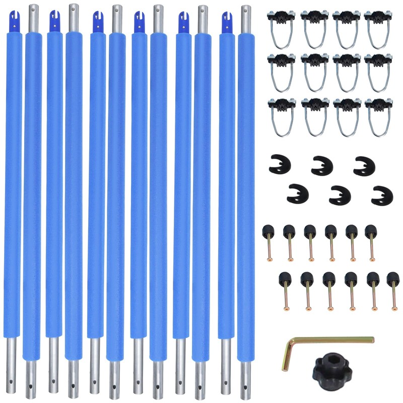 Wadoy Trampoline Poles Replacement Enclosure Poles Kit Blue for 12Ft - 16 Ft Trampolines Universal Fits 6 Straight Poles Round Frame with Clamp and Hardware
