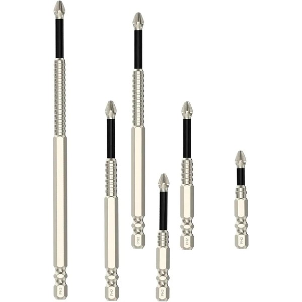 - Complete Size Range: The cross head bits come with 6pcs metric hex impact bits, includes multiple sizes to fit different screw types: PH2*25, PH2*50, PH2*65, PH2*70, PH2*90 and PH2*150