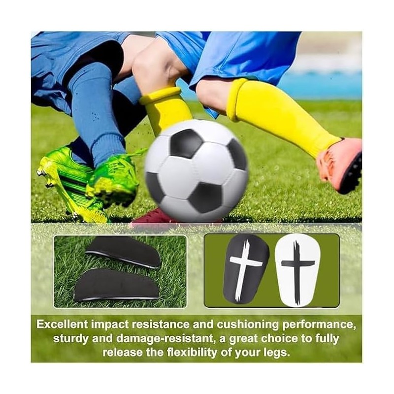 - Premium Material: The black white cross shin guards are made of premium quality PP and EVA material to protect against impacts and collisions on the football field, comfortable to wear, making your legs are fully protected.Soccer shin guards are durable and comfortable, providing a comfortable fit and better flexibility.