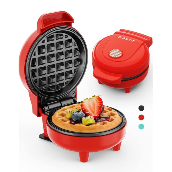 Waffle Maker Mini Small Compact Design, Breakfast Waffle Iron Machine Nonstick Coating, Snack Chaffle Hash Browns Round 4 Inch 550W, Red BLAZANT