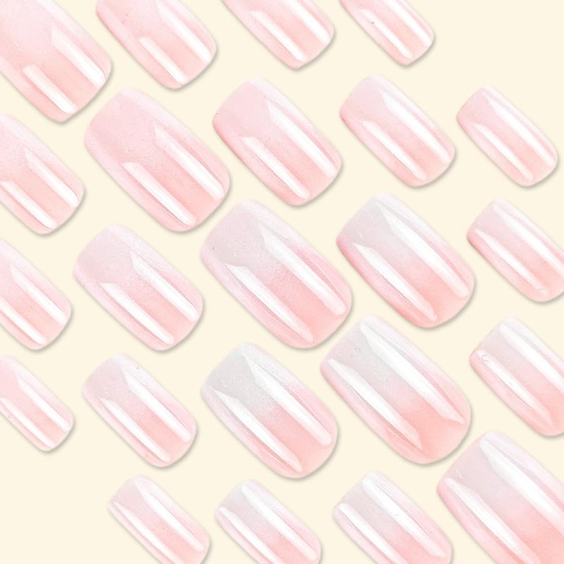 WAFOLOZE Nails Press ons, Square Press on Nails Medium Girls Fake Nails with Light Pink To White Ombre Design, Acrylic Artificial False Nails Press On Glue On Nails for Women