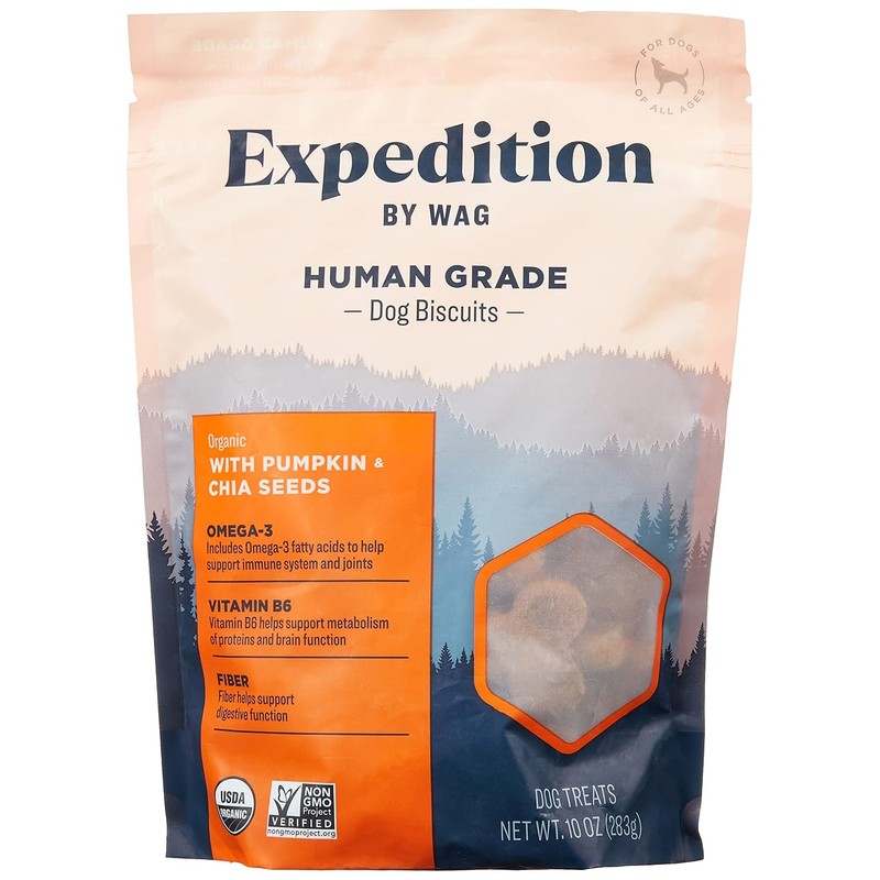 Imagine a treat that's not only incredibly delicious but also made with the same high-quality, organic ingredients you'd find in your own pantry. Wag Expedition Organic Human-Grade Dog Biscuits with Pumpkin & Chia Seeds in a 10-ounce bag offers just that: a premium, guilt-free snack designed for discerning pet parents who want nothing but the best for their furry companions. These biscuits are perfect for rewarding good behavior, supporting training, or simply showing your dog some extra love during your daily adventures.