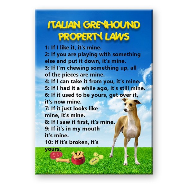 Wag Whimsy Italian Greyhound Property Laws Fridge Magnet