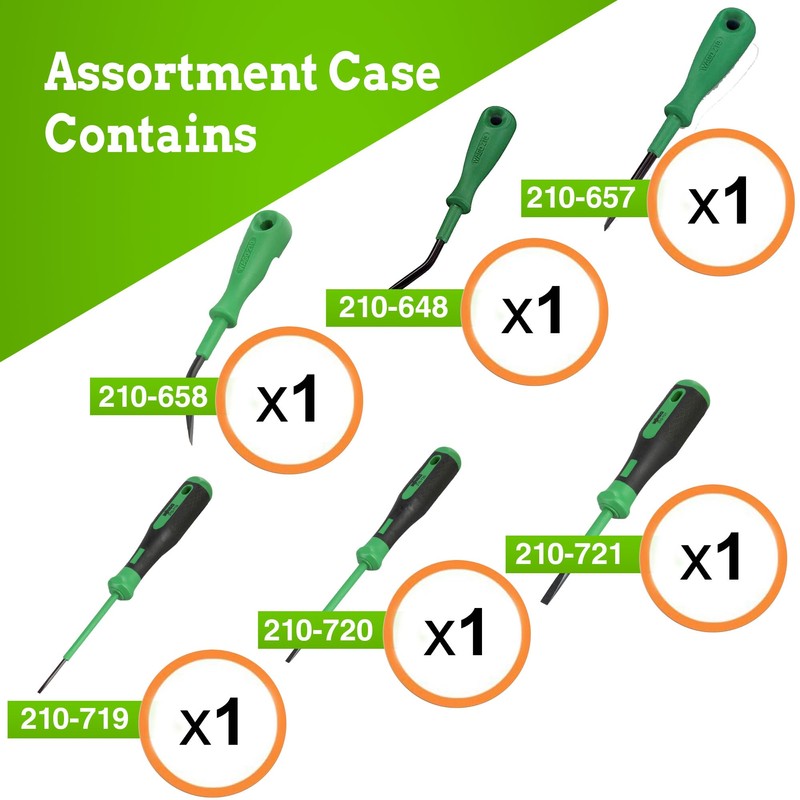 WAGO 210 Series 6pc Operating Tool Assortment Pack | Terminal Screwdriver Set | Partially Insulated Shaft | Includes (210-719), (210-720), (210-721), (210-648), (210-657), (210-658) | Terminal Block