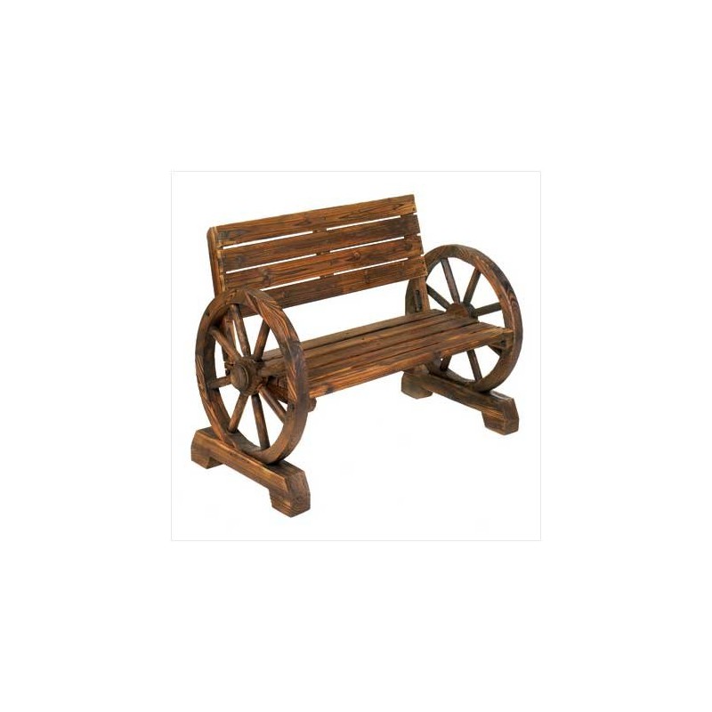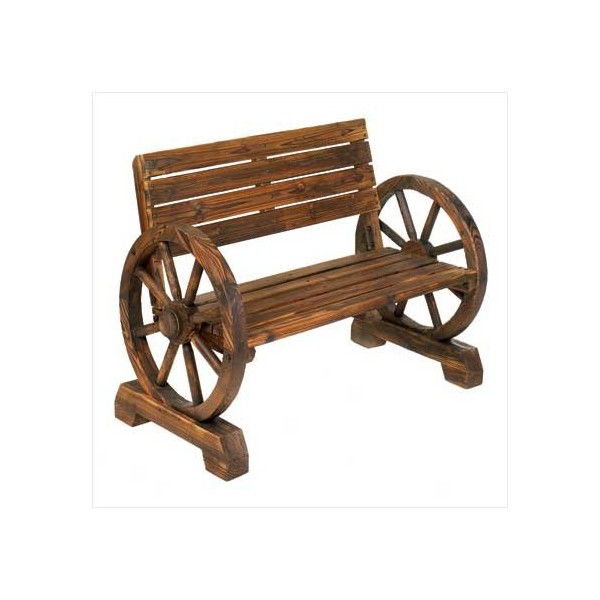 Laze in the shade after a long day; this rustic bench is right at home on patio, porch or lawn. Sturdy love seat has ample seating for two, with quaint wagon wheel armrests at either end. It’s country comfort at its finest! Weight 35 lbs. Wood. Some Assembly Required. 42 1/4" x 21" x 31" high. Due to the size and weight of this item, it can only be shipped within the Continental U.S. via UPS Ground and to Canada via Canada Post (no USPS Priority Airmail or PO Boxes).