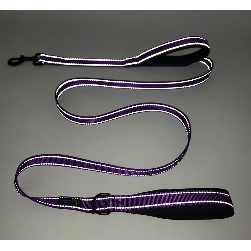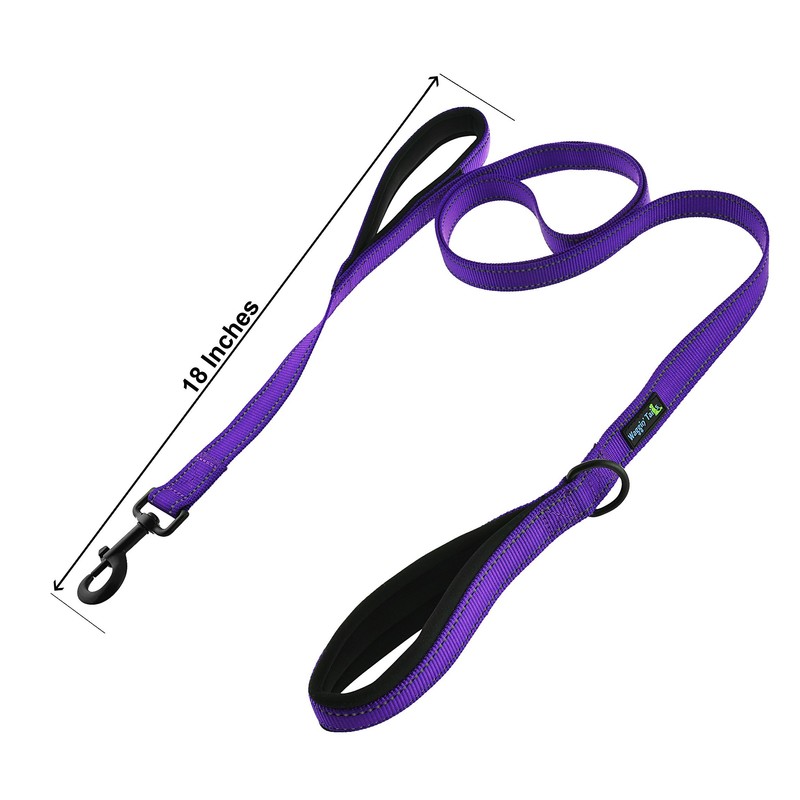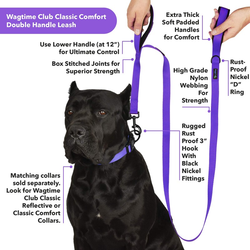 Wagtime Club Soft &Thick Dual Handle 6FT Dog Leash, Premium Nylon Double Padded Handles for Medium, Large or XLarge Dog (Reflective Vibrant Purple)