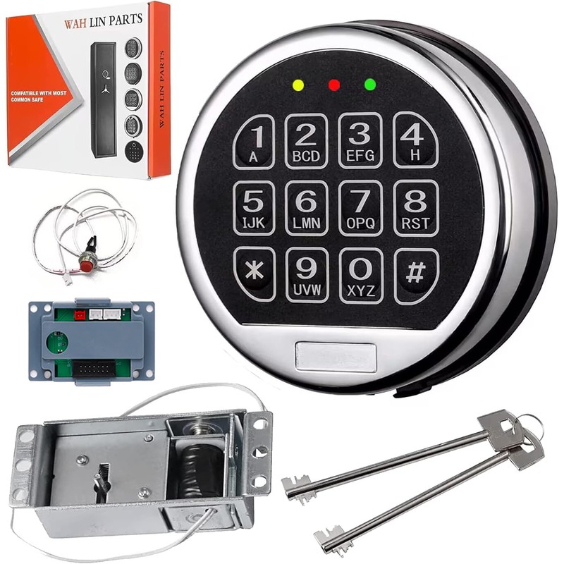 Gun Safe Lock Replacement Electronic Safe Lock with Solenoid Lock & 2 Override Keys, Chrome Keypad High Security Fireproof Safe Box and More