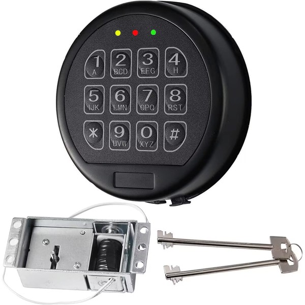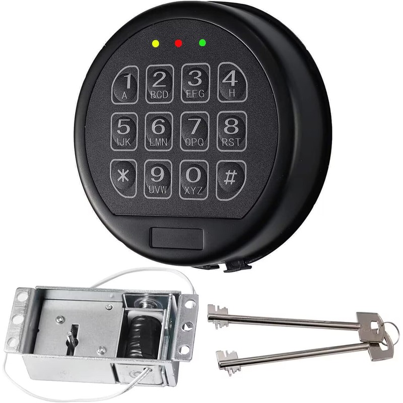 Gun Safe Lock Replacement with 2 Override Keys & Solenoid Black Keypad Safe Electronic Safe Lock for Fireproof Safe Box