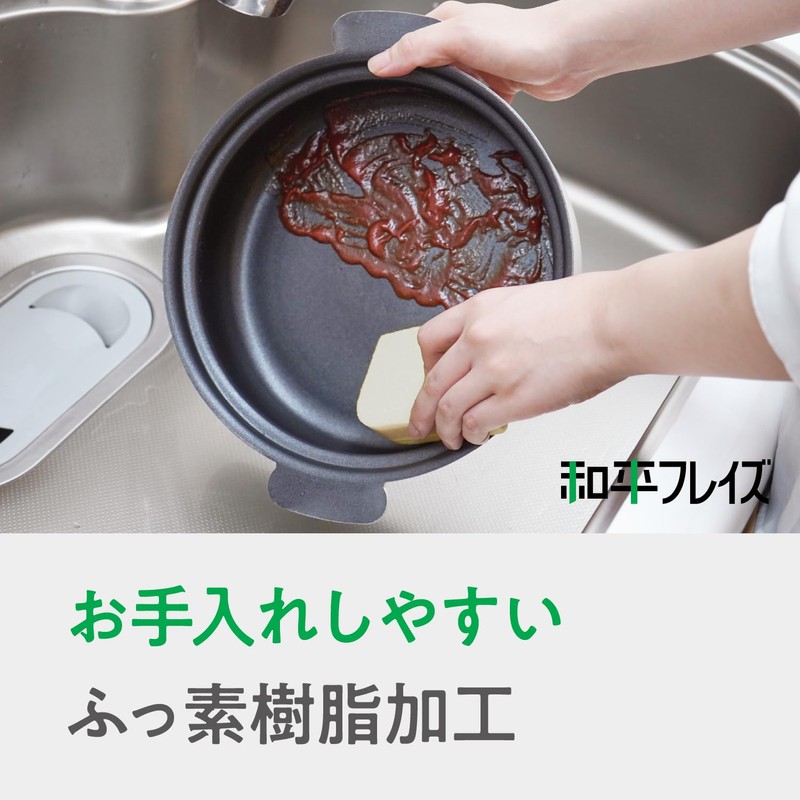 - Body: Aluminum alloy; Interior: Fluorine resin processing; Exterior: Baked coating; Base: Stainless steel (16% chromium) (Bottom thickness 0.1 inch (2.6 mm) *Includes bottom bottom)