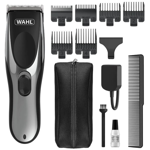 - Kit Contents: Cordless Clipper equipped with a high-quality detachable, washable precision blade, 6 Guide Combs (#½, #1, #1½, #2, #3, #4), Blade guard, Styling comb, Storage pouch and accessories