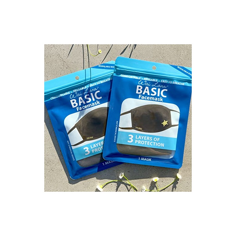 Wai Lana Basic Cloth Face Covering - Comfortable, Soft, Reusable, Washable, Pack of 3