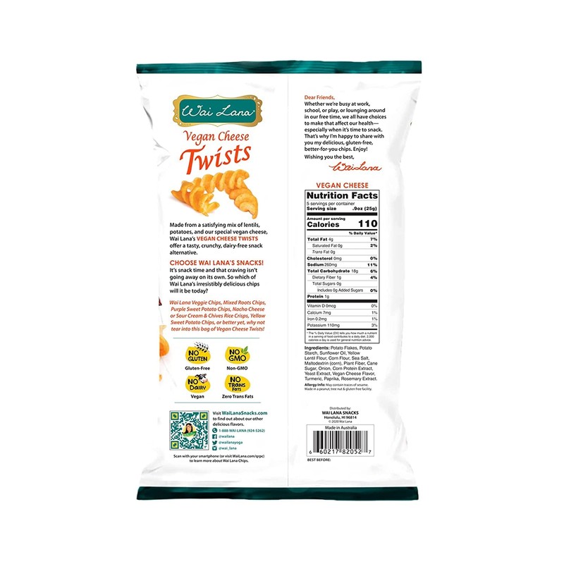 Wai Lana Chips Vegan Cheese Twists with Potato and Lentils - Gluten Free, Non-GMO, Zero Trans Fat, 4.5 oz(Count of 12)